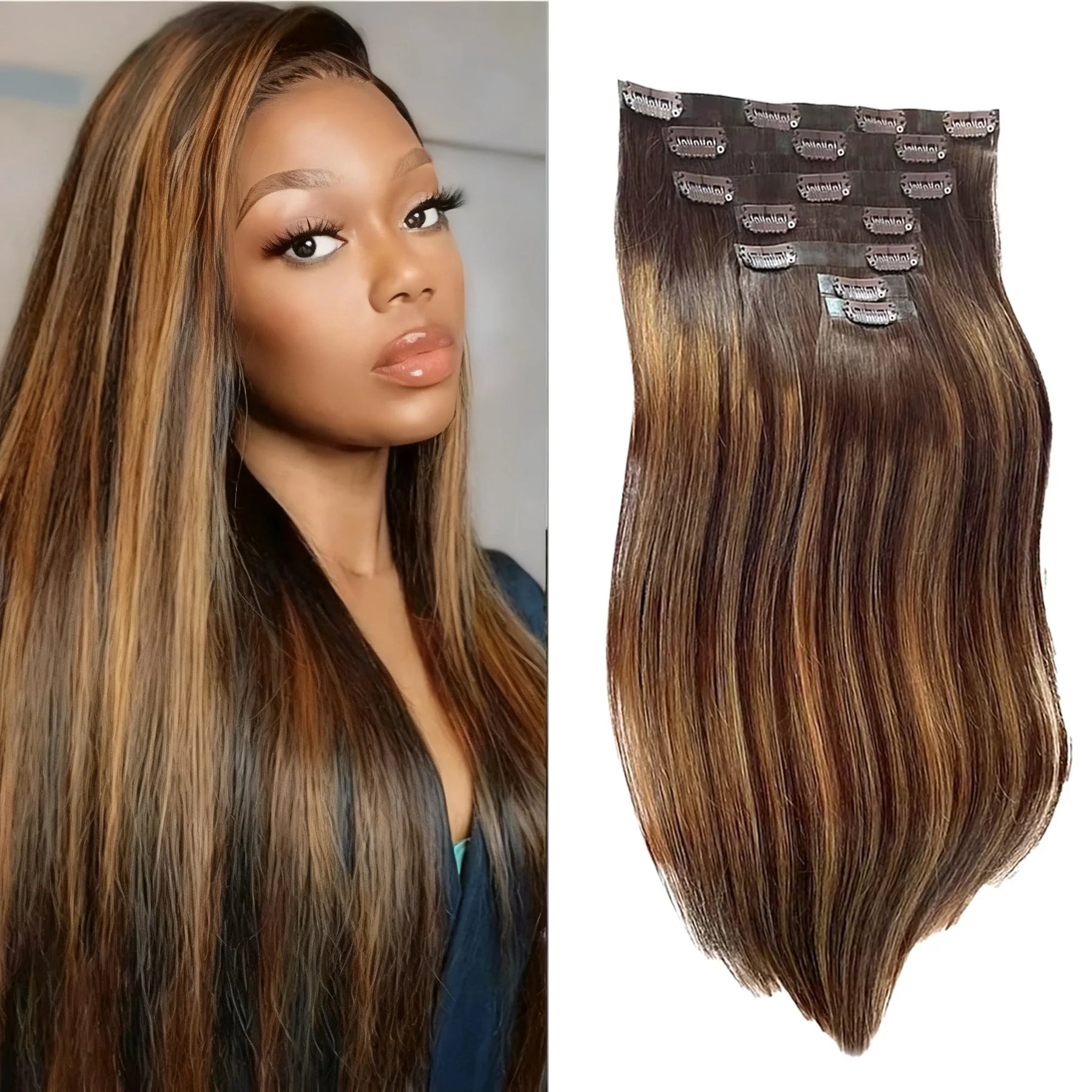 Wollten Sie schon immer mal Ihren Look verĂ€ndern, ohne sich festzulegen? Diese Clip-in-Extensions machen es möglich. In weniger als 10 Minuten verwandeln Sie Ihr Haar von gewöhnlich in eine voluminöse MĂ€hne, die alle Blicke auf sich zieht. Das 9-teilige Set sorgt fĂŒr eine perfekte Abdeckung von den SchlĂ€fen bis zum Nacken. FrĂŒher wachte Marie jeden Morgen seufzend auf und sah ihr dĂŒnnes Haar an. Jetzt braucht sie nur noch wenige Augenblicke, um ihre Extensions einzusetzen und startet selbstbewusst in den Tag.