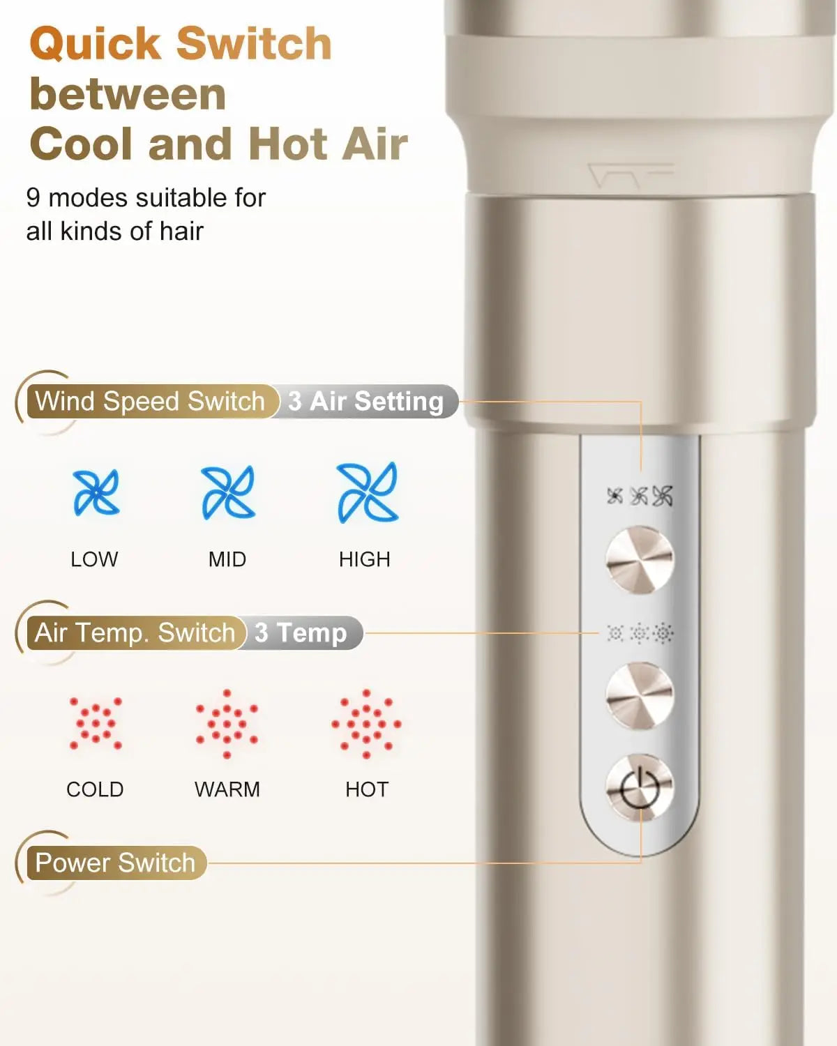 Styler multi-cheveux 6 en 1, brosse à air chaud, séchage rapide de 110000 tr/min et coiffeur à ions négatifs, sÚche-cheveux avec 3 températures